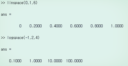 - longspace(a,b,c) = logarithmic 증가 행렬