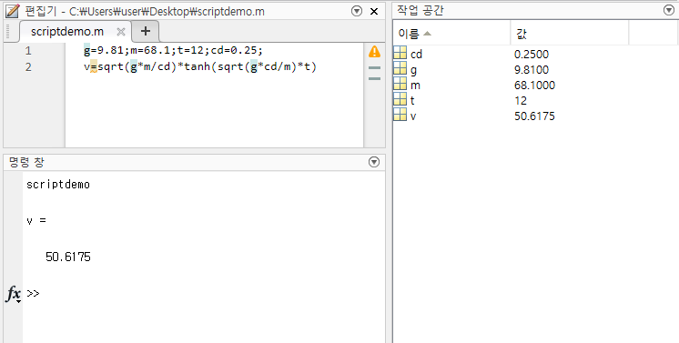 - 스크립트(script) 파일 : 일련의 MATLAB 명령이 들어 있는 M-파일