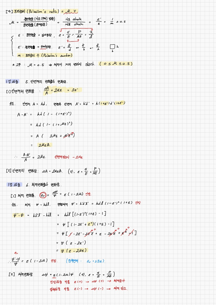 - 프와송비는 [0,0.5]의 범위를 가지고 있으며, 고무의 경우 프와송비가 0.5여서 체적이 거의 변하지 않는다.