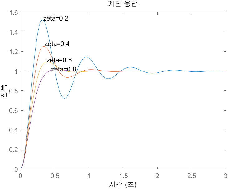 | Matlab 실습 8. 감쇠비에 따른 단위계단 응답 (0) | 2022.12.24 |