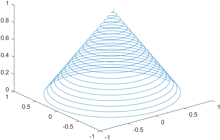 문제 : 바닥에서 20바퀴를 돌아 꼭지점에 도달하는 원추형 선 그래프를 그려보자