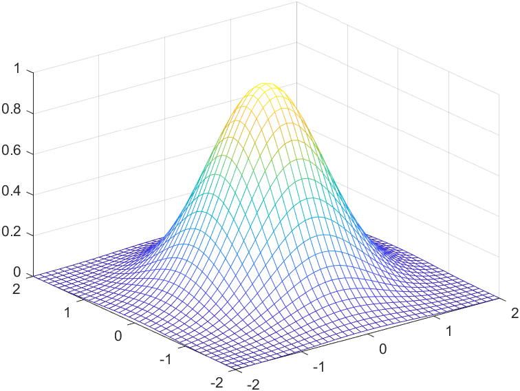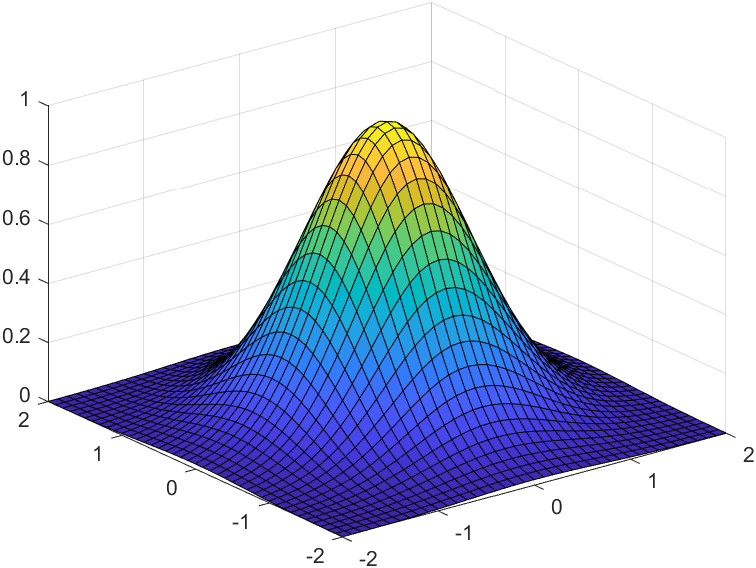 xx=-2:0.1:2; yy=xx; [x,y]=meshgrid(xx,yy); z=exp(-x.^2-y.^2);