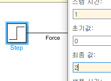 이 모델에서 입력은 힘이므로 1초부터 2N의 힘이 일정하게 가해지도록 step input을 이용해보자.