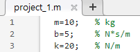 이제 Simulink를 이용하여 전달함수를 블록선도로 나타내보자. 이번에는 m,b,k를 matlab m-파일로 작성하여 정의해보자.