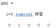 예를 들어 x=[1 2 3 4 5] 행렬이 있는 경우, x==1을 실행하면 다음과 같은 logical array가 나타난다.